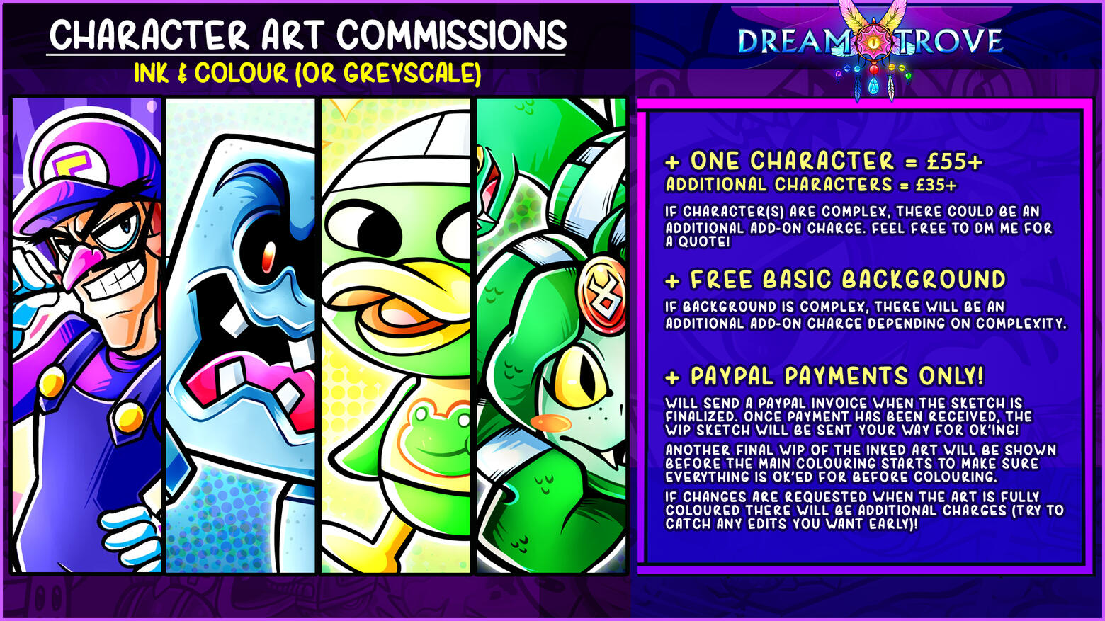 All of my Art Commission Services can be found on this page! The best way to get in contact with me is through my Community Discord Server and DM'ing me the details of your request. I'll be able to give you a quote for the commission work upon you giving further details of what you want, if you do decide to go ahead with the commission you'll be added to the commission list which is just below. Be sure to zoom in on the commission sheets if you are viewing on a Smart Device so you can read the details. Also don't forget to read the Terms of Service which is below all the commission details at the bottom of the page!I never ask for payment until I have a sketch ready to show. Once the sketch is done I'll send a PayPal Invoice and once payment is received I'll send over the sketch and further the progress of your art commission. If you have any further questions please do not hesitate to contact me!